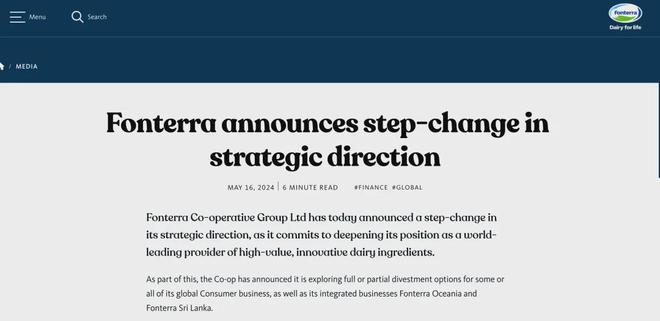今天,恒天然表示,将任命顾问协助评估剥离方案。其强调,在考虑方案时做出的选择,将取决于如何能最好地价值创造,无论是出售的潜在收益,还是恒天然所能产生的持续经济回报能力。